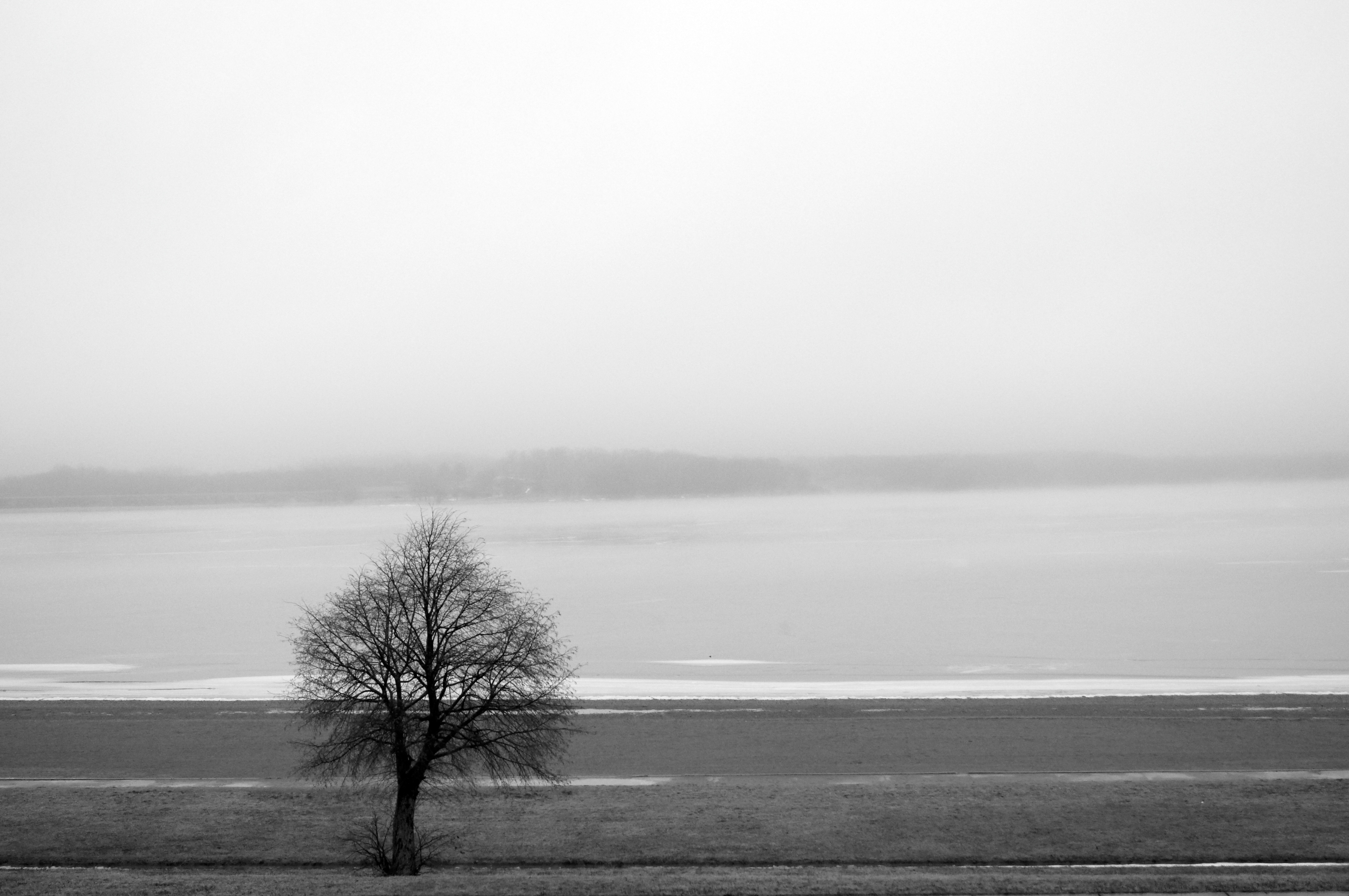 What caught my eye was the way the tree broke the parallel lines of the beach. However, when I began processing the image, I was pretty dissatisfied. The lines were not as parallel as I had thought. There was ice floating in the water that was distracting. So I gave the problem some thought and opened up Photoshop.